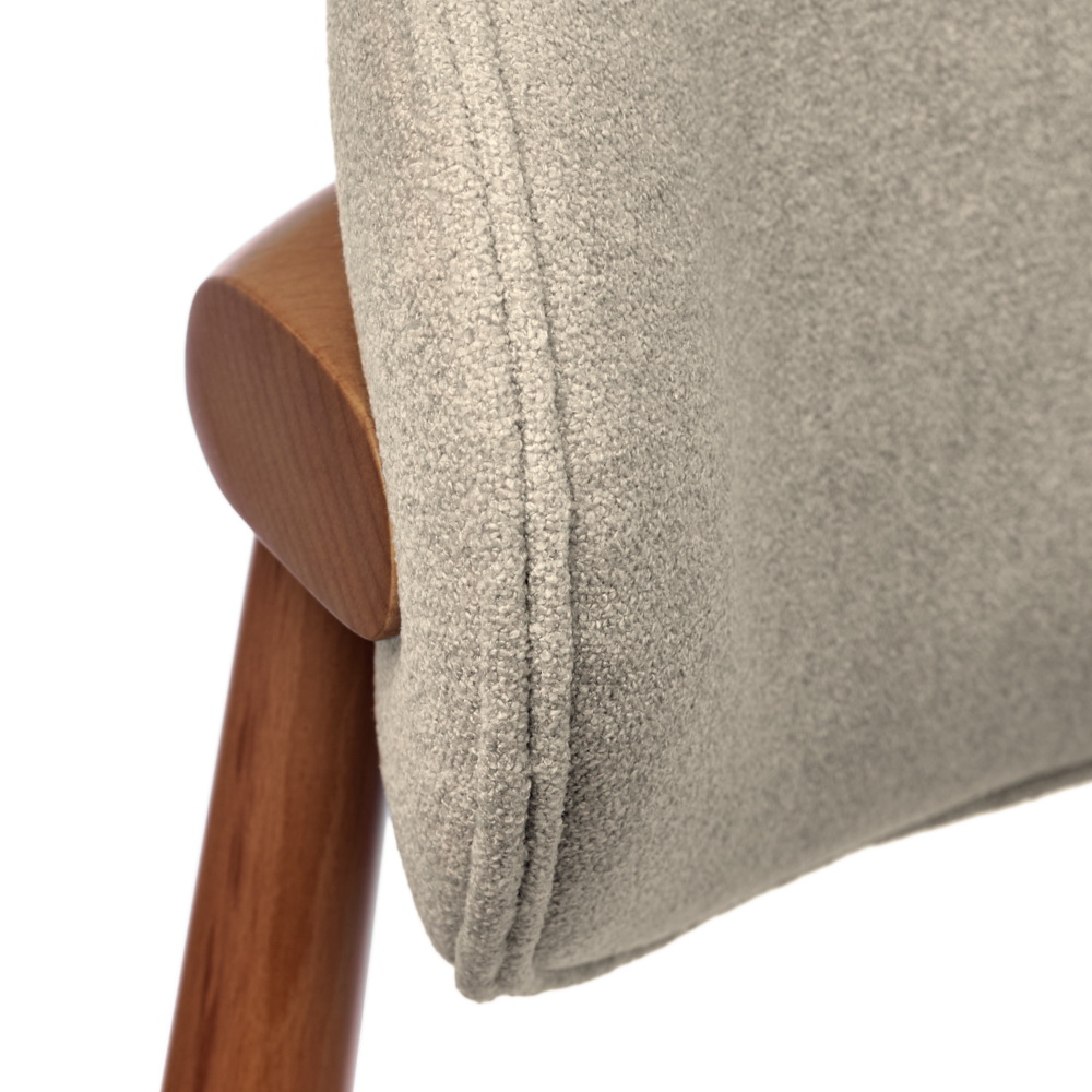Стул Lucas 3 — это стильное и функциональное решение для вашего дома, офиса или ресторана. Его сиденье и спинка изготовлены из высококачественной ткани букле коллекции Like, которая приятна на ощупь и устойчива к износу. Благодаря трикотажной подложке, ткань сохраняет свою форму и легко драпируется. Рельеф поверхности ткани добавляет пространству природной текстуры, выделяет очертания мягкой мебели и сглаживает угловатость её форм. Мелкозернистая фактура букле создаёт тёплую и спокойную атмосферу в интерьере. Плавные линии, мягкие контуры и современный дизайн стула Lucas 3 позволяют ему легко вписаться в различные стилистические решения, такие как классический, минималистичный, скандинавский, джапанди, японский или ваби-саби. Мягкие спинка и сидение обеспечивают максимальный комфорт. Оригинальный каркас стула изготовлен из массива натурального дерева бук в благородном ореховом цвете. Прочные и надёжные ножки стула гарантируют устойчивость и долговечность. Выпирающие части каркаса минимальны, что делает стул удобным для использования в ограниченном пространстве. Мелкая структура дерева образует удивительно гладкую поверхность, придающую стулу особый шарм. Благодаря мелкой структуре дерева, поверхность стула становится гладкой и приятной на ощупь. Стул Lucas 3 способен выдерживать нагрузку до 120 кг, что обеспечивает его долговечность. Сочетание элегантности и роскоши делает стул Lucas 3 привлекательным дополнением к любому интерьеру.