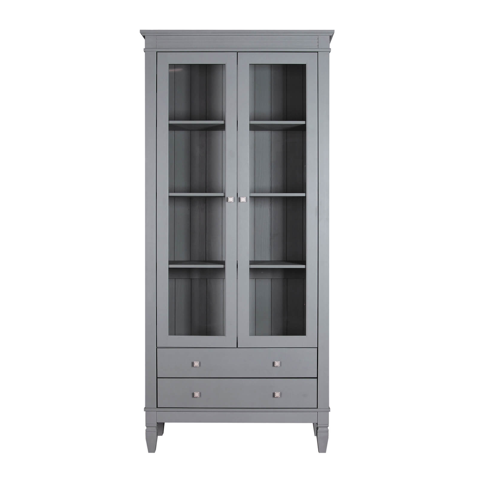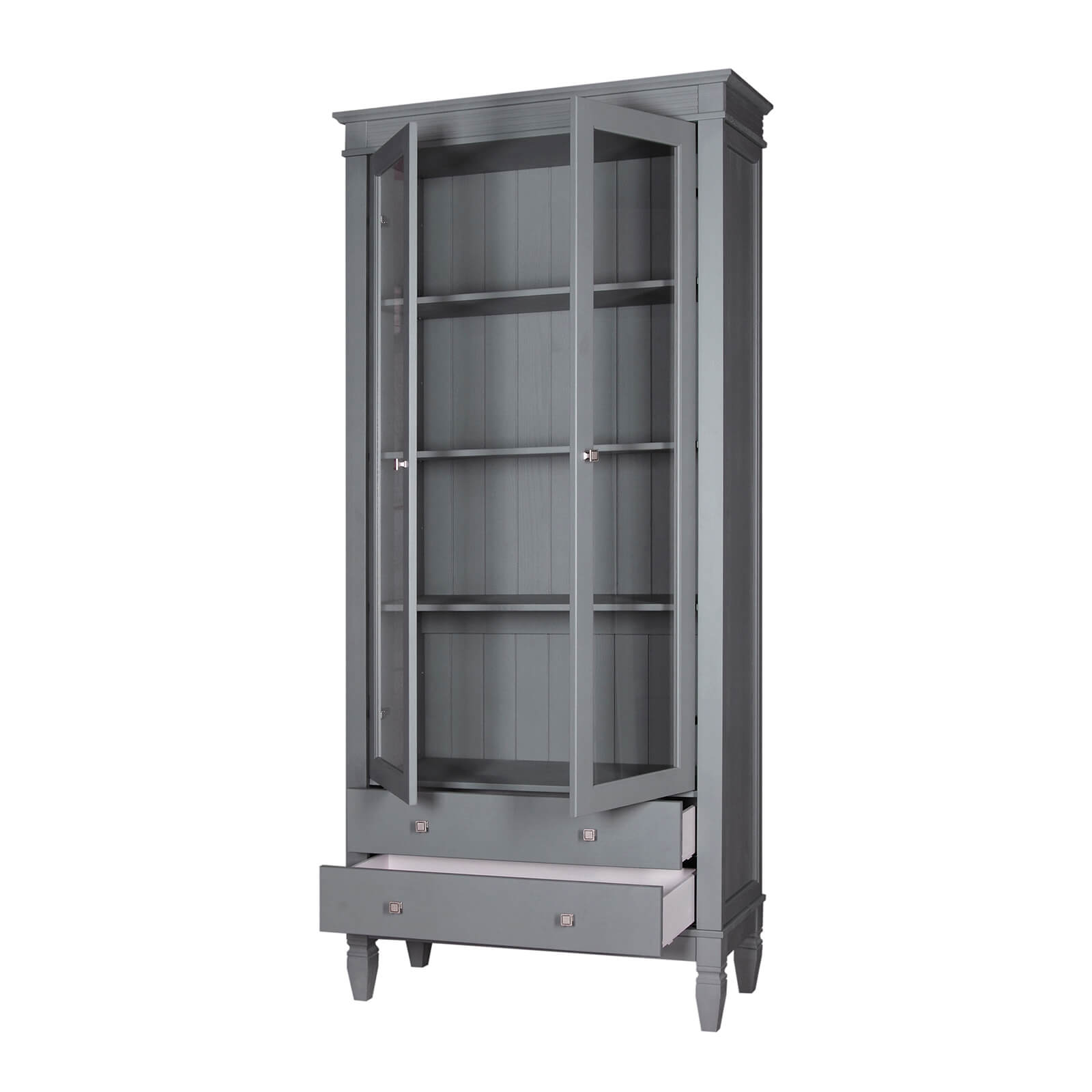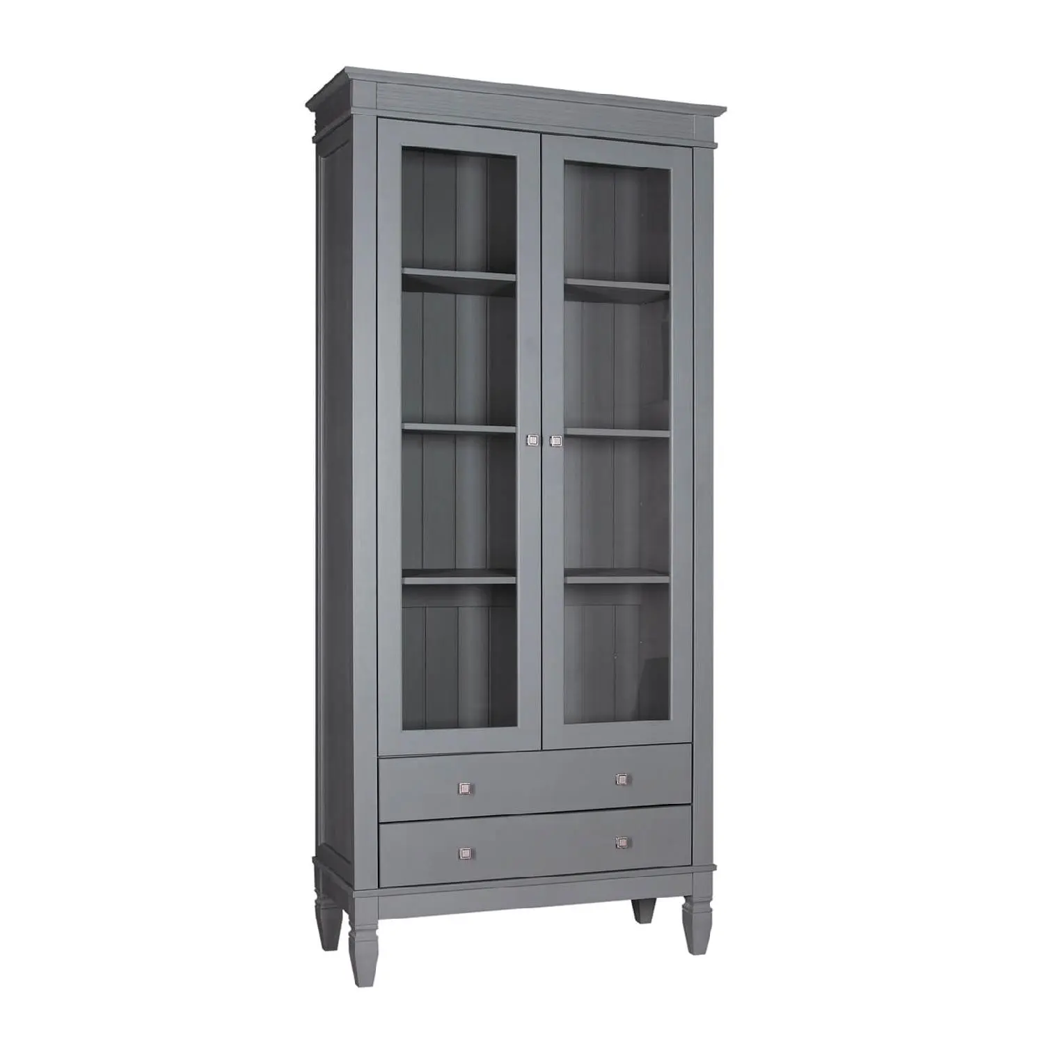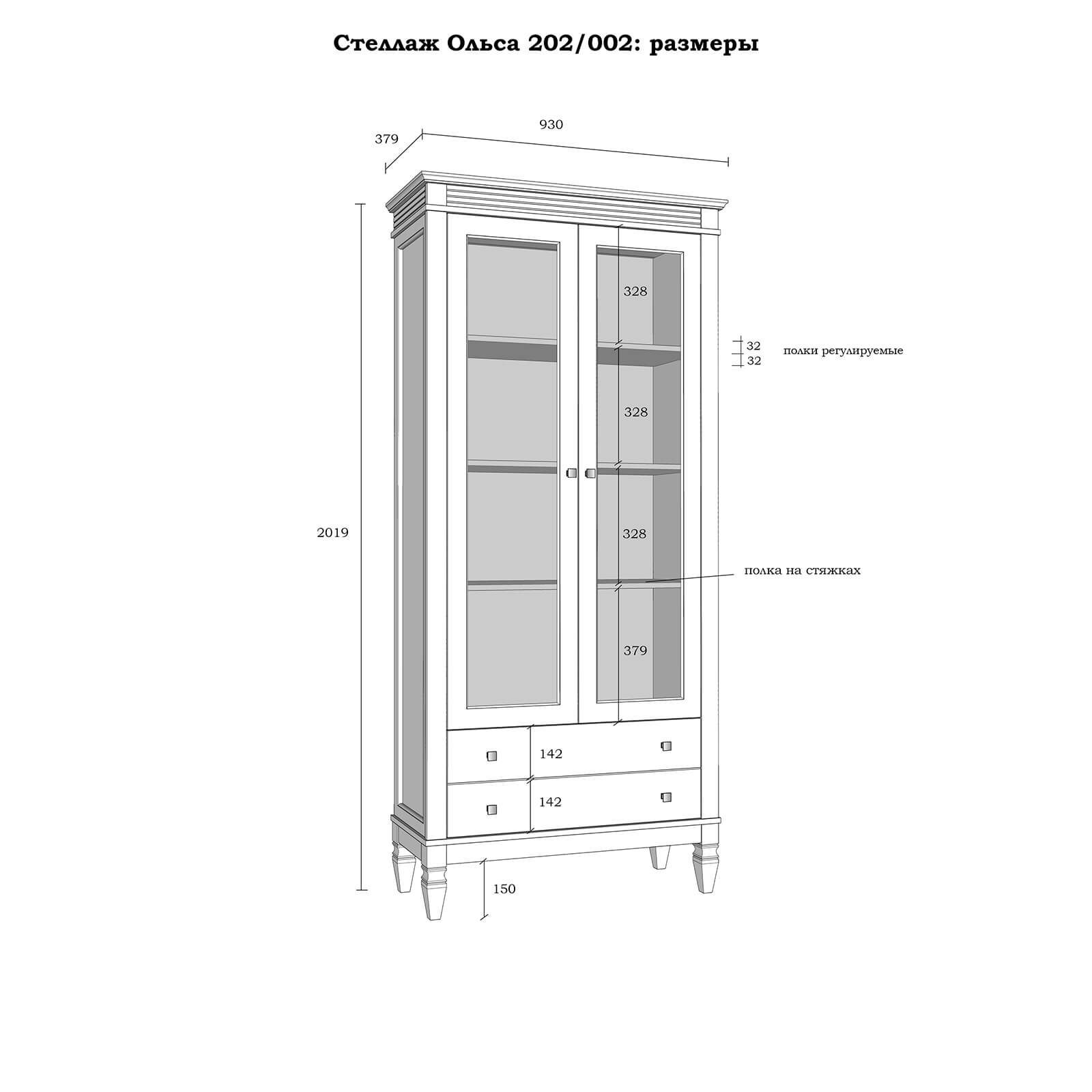 Оснащен двумя ящиками и четырьмя вместительными полками за стеклянными распашными дверями.