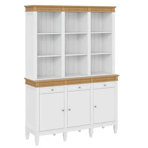 Буфет визуально разделен на 3 секции которые укомплектованы шестью полками сверху,