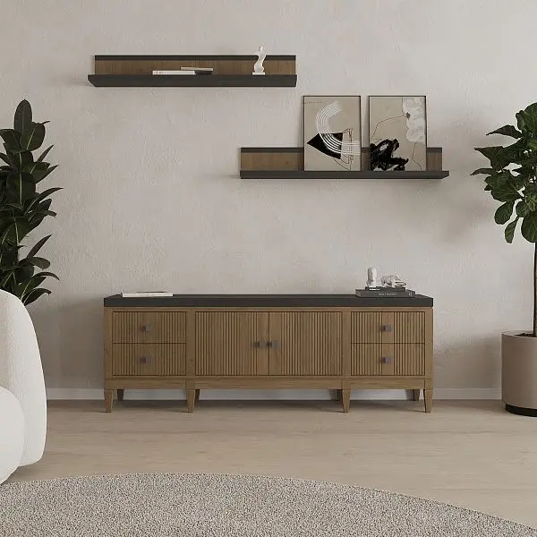 (4.2.3) Тумба ТВ с ящиками дуб Фокстрот 024B (дуб натуральный/бетон)