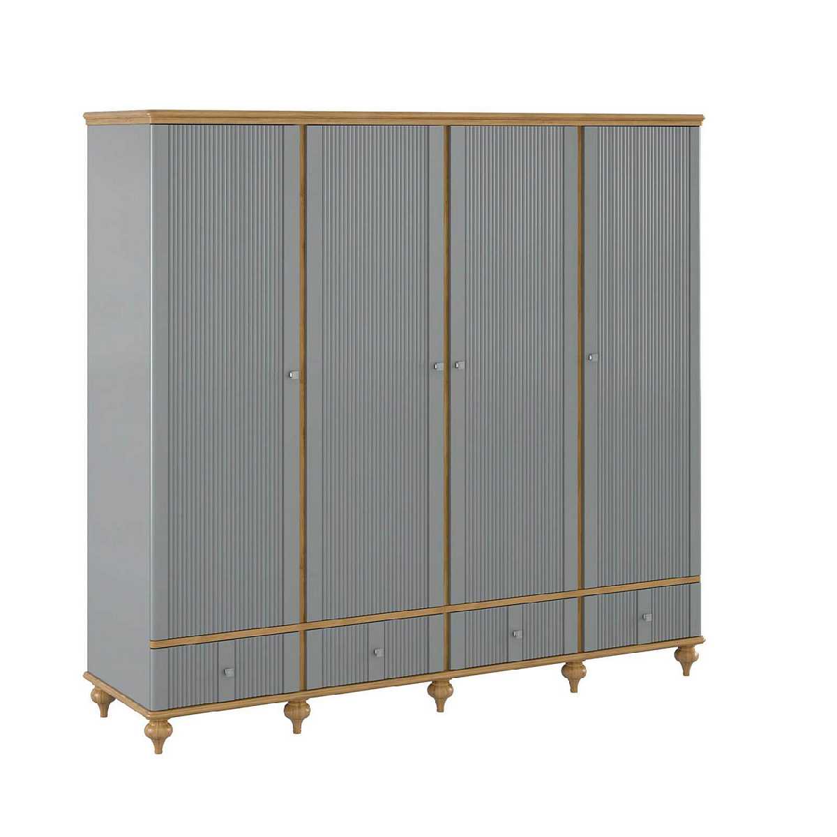 Шкаф оснащен четырьмя ящиками и четырьмя штангами.