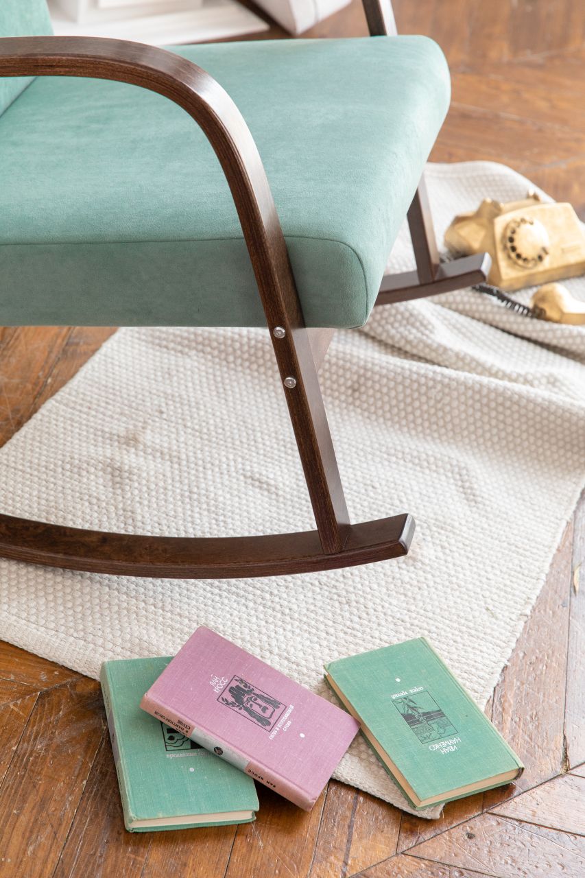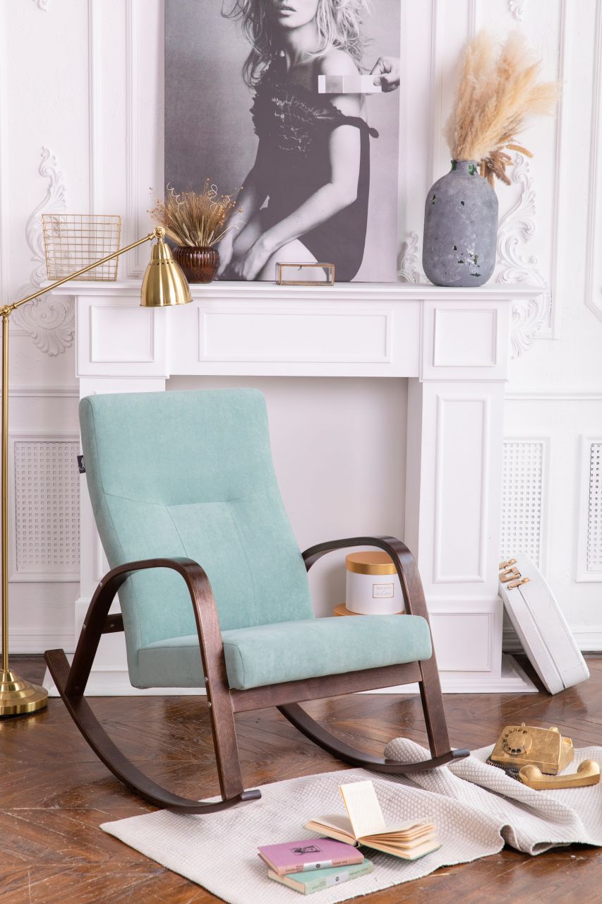 Кресло-качалка с тканевой обивкой цвета Минт и каркасом цвета Венге