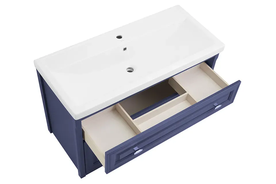 Коллекция мебели для ванной комнаты «Кастелло» – это подвесная тумба с вместительными выдвижными ящиками, керамическая раковина, подвесной пенал и настенное зеркало в оправе. Корпуса и фасады сделаны из массива ясеня, стенки ящиков из МДФ.