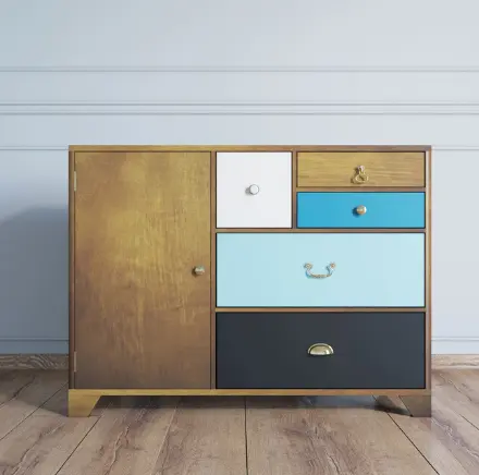 Комод изготавливается вручную из массива березы. Ящики и некоторые вкладки из березовой фанеры. Фурнитура - латунь. Изделие покрывается итальянскими лакокрасочными материалами Sayerlack.
