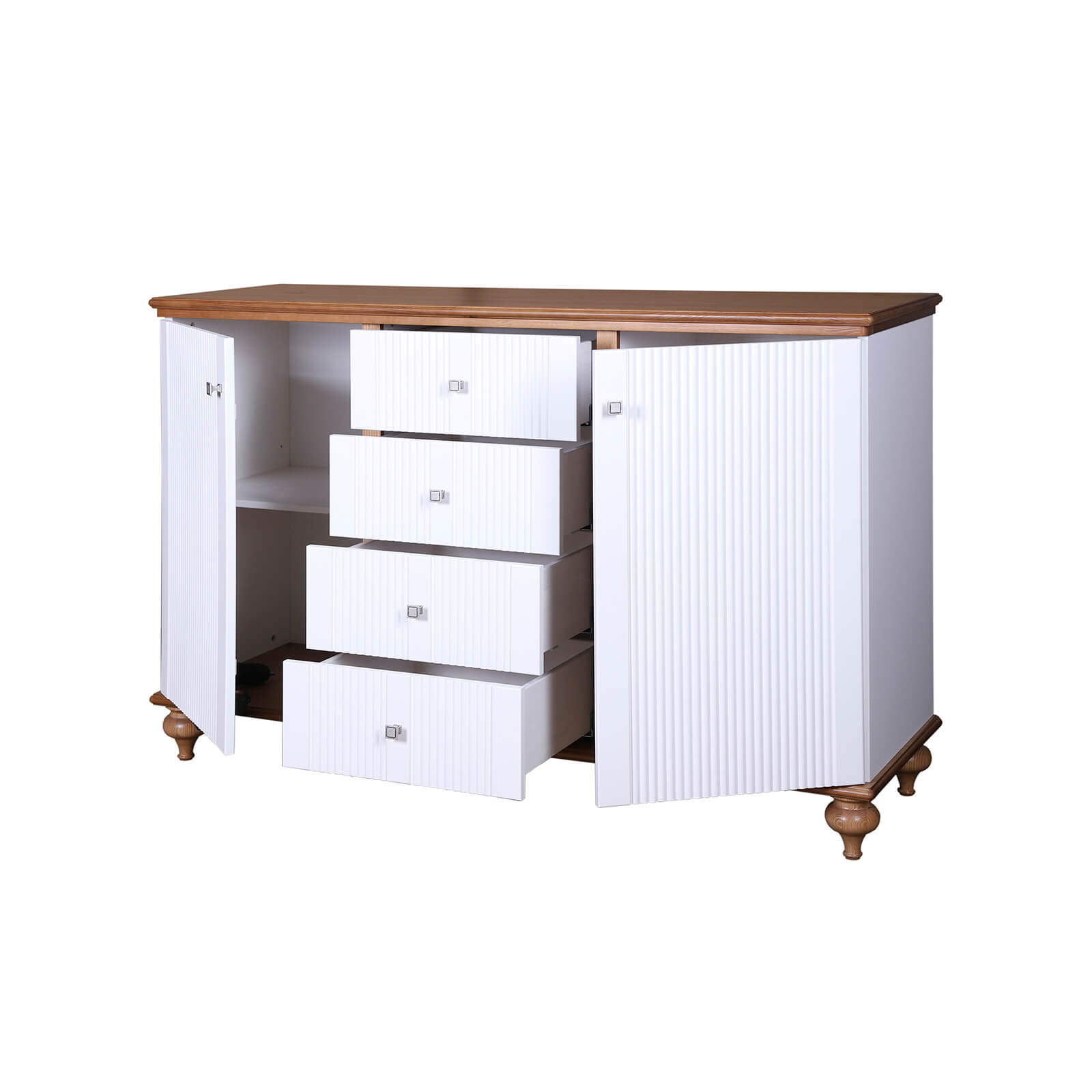 Поверхности изделия обработаны лаками и красками, которые выгодно подчеркивают естественную красоту натуральной древесины.