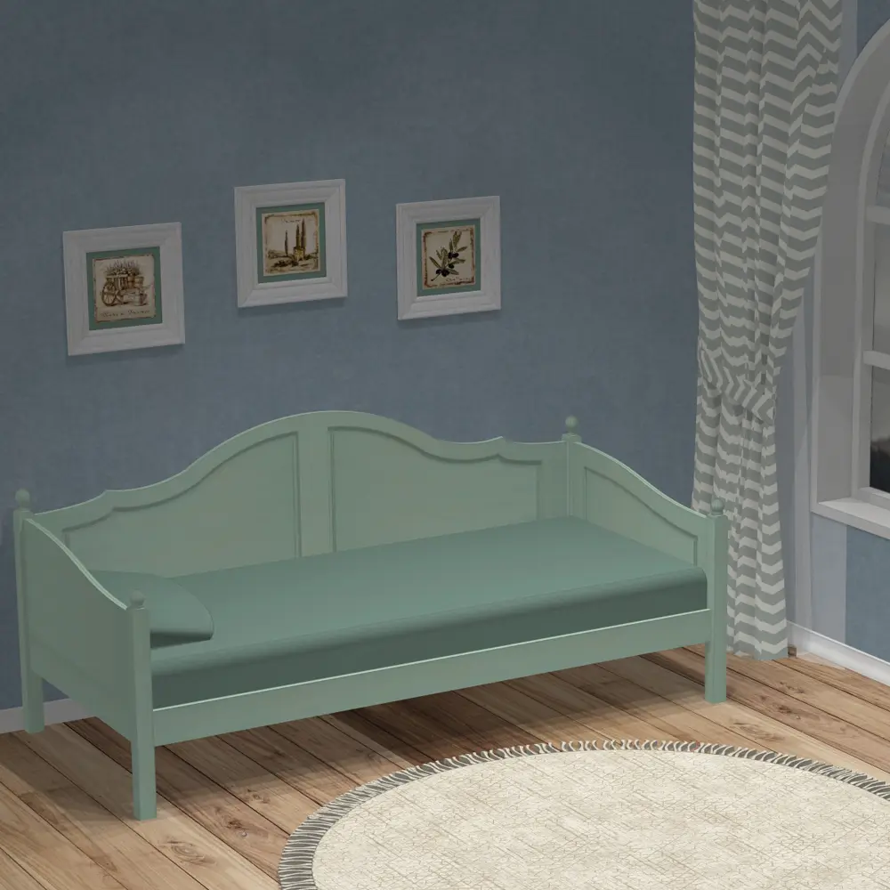 Необычность заключается в наличии боковой спинки, что роднит этот предмет мебели с тахтой,