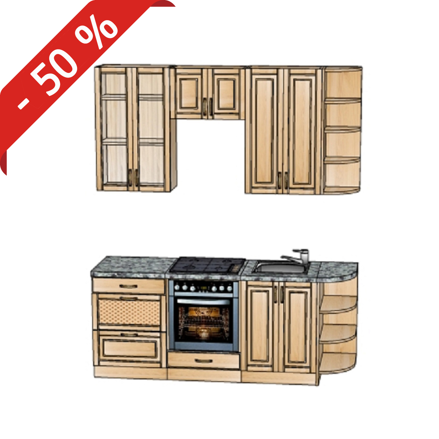 Обращаем внимание, что компания не производит выравнивание полов, стен, укладку керамической плитки, подключение бытовой техники к электросети и водоснабжению, а также других производственных работ, не указанных в спецификации к кухне.