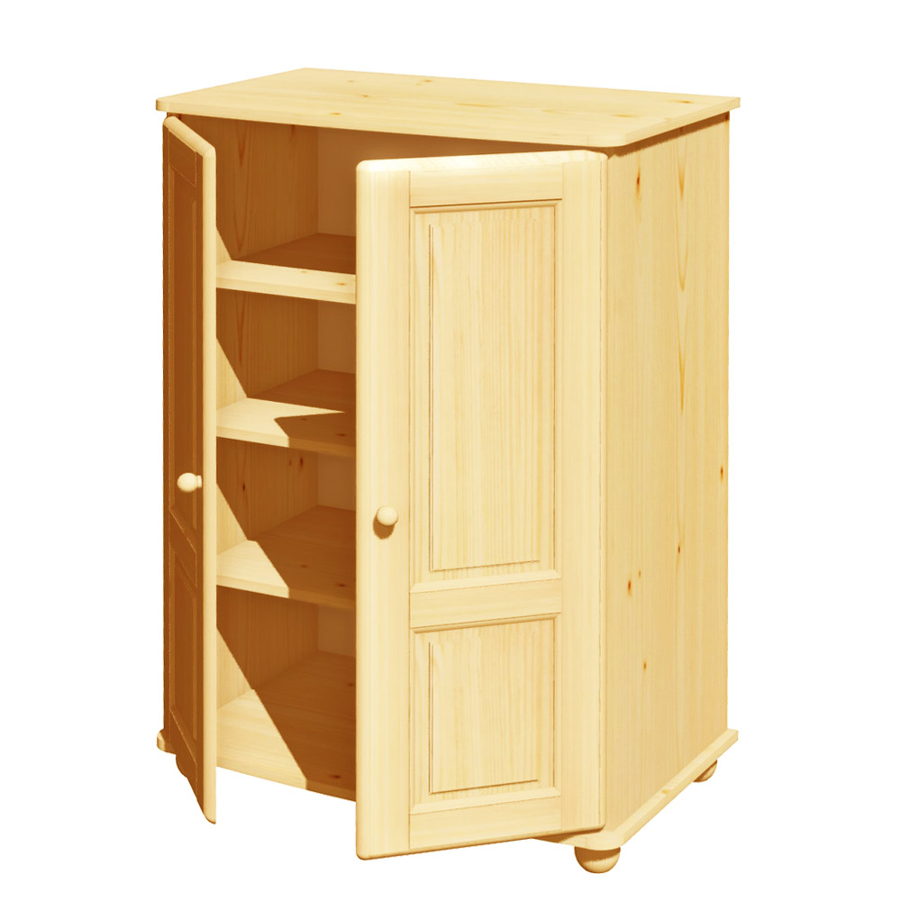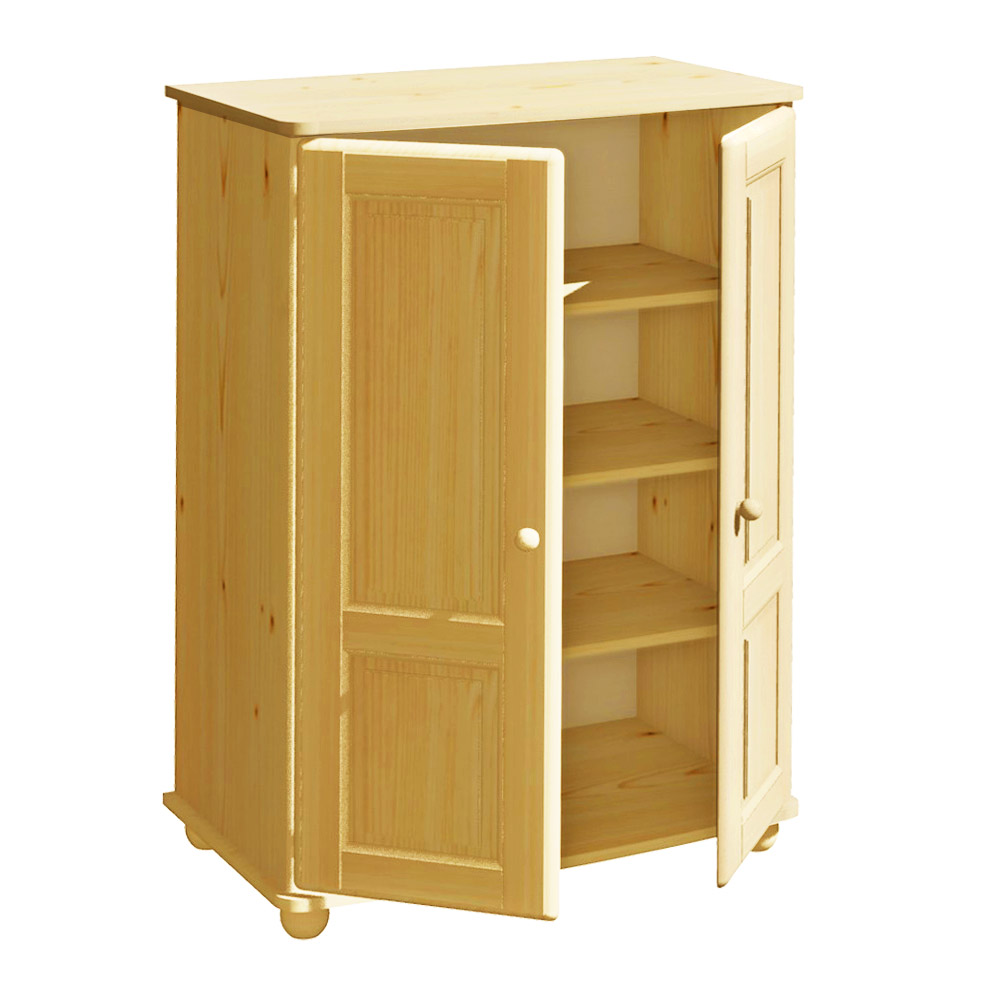Шкаф стоит на круглых, крепких ножках, изготовленных так же из массива сосны.