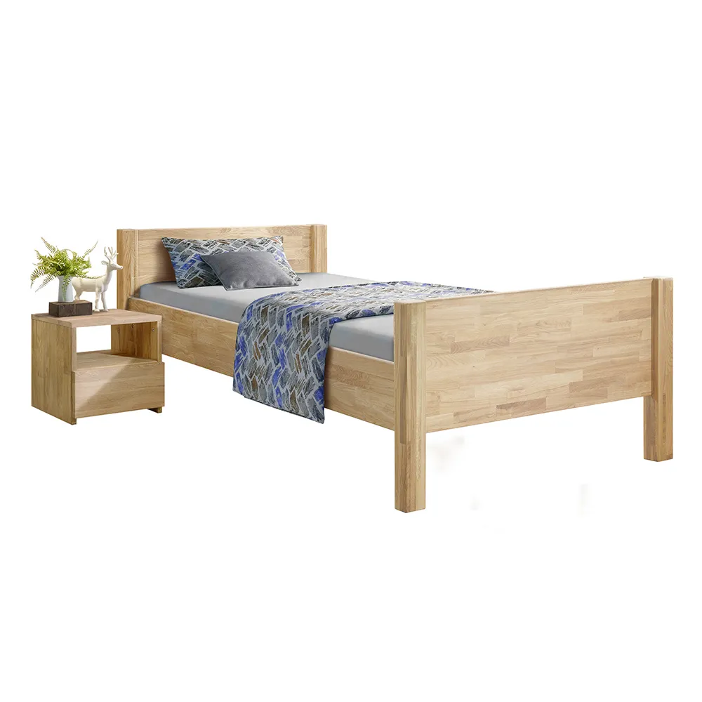 Односпальная кровать «Ханс» — это идеальное сочетание стиля, комфорта и надёжности. Каркас кровати изготовлен из натурального дерева – массива дуба. Доступно 6 цветов отделки, на выбор: бейц-масло, дуб венге, дуб отбеленный, дуб паркетный, темная вишня, итальянский орех. Кровать имеет высокие массивные ножки, между которыми остается достаточно места для уборки.