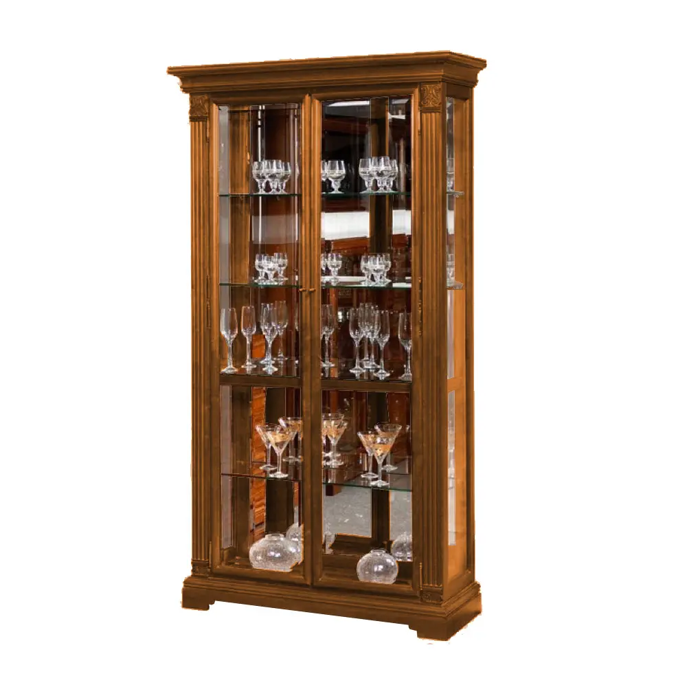 На просторных стеклянных полках можно разместить любимый сервиз, рюмки и бокалы.