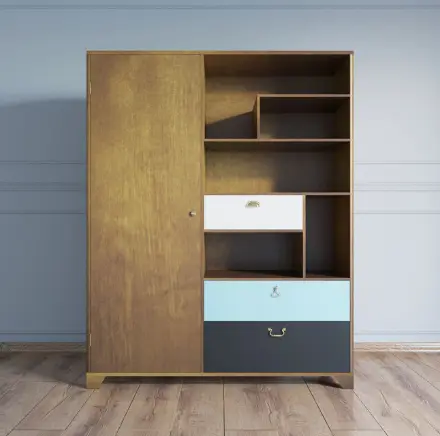 Шкаф-стеллаж Aquarelle в модном стилевом направлении поп-арт. Разноцветные акварельные оттенки фасадов выдвижных ящичков и отделений в сочетании с классической формой смотрятся оригинально и интересно. Шкаф-стеллаж Акварель прекрасно впишется в интерьер гостиной, рабочего кабинета, столовой, детской и т.д.