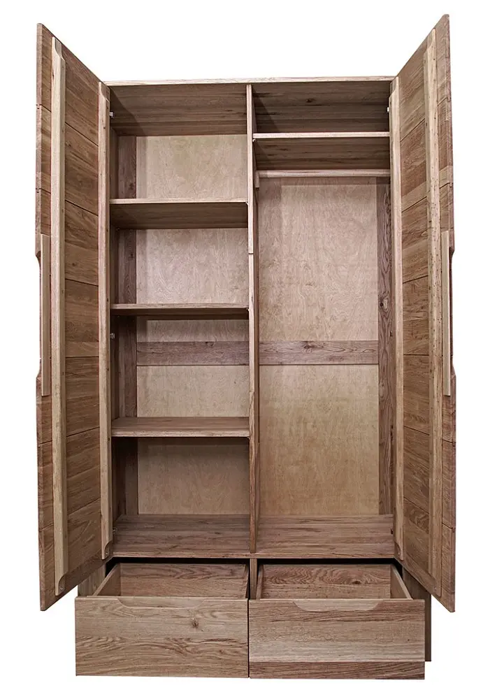 2-хдверный шкаф для одежды в индустриальном стиле из дуба.
