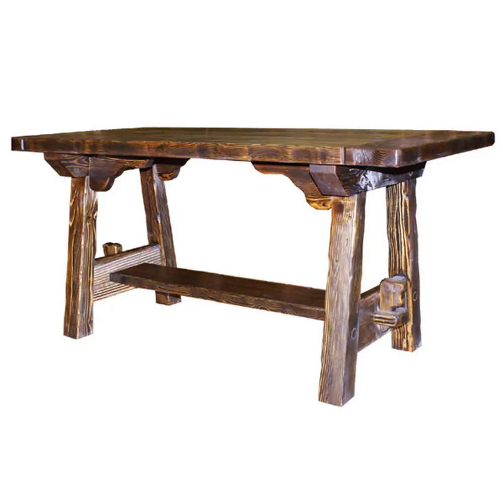 Обеденный стол на четырех ногах. Выполнен из натуральной сосны с эффектом броширования.