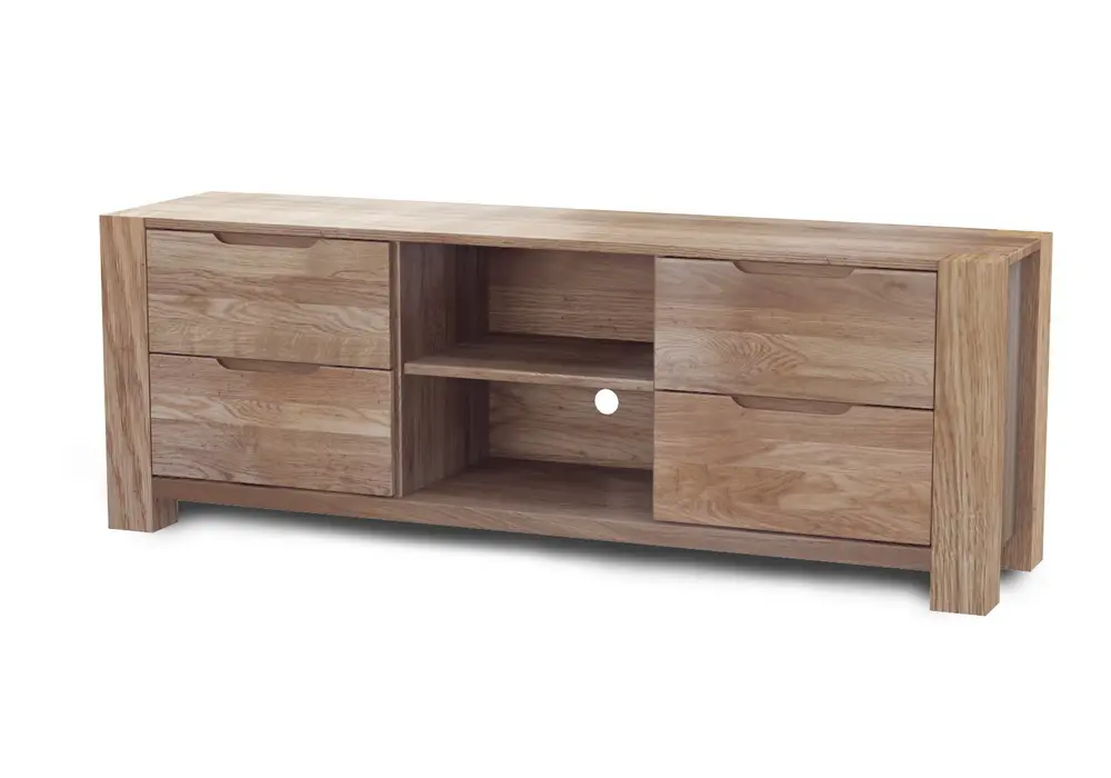 Минималистичная тумба-ТВ, оформленная в популярном стиле лофт.